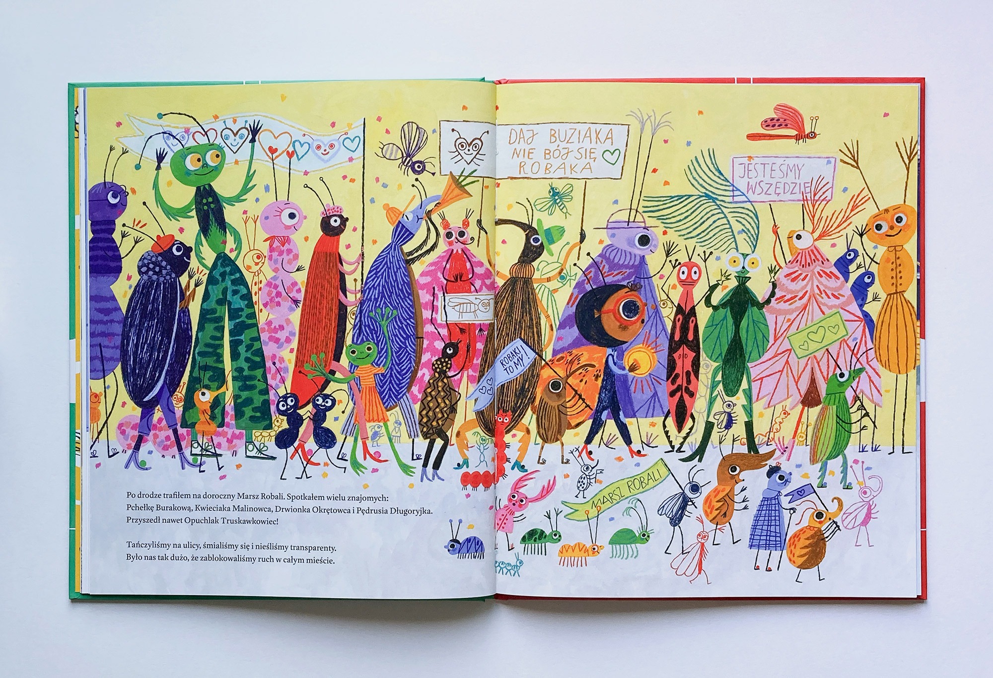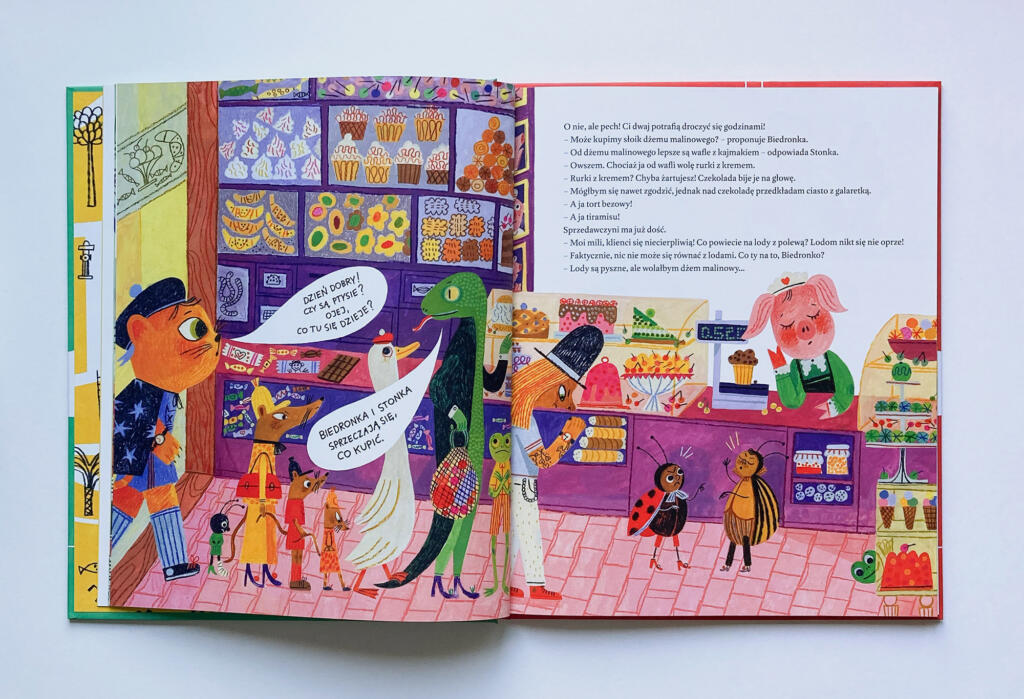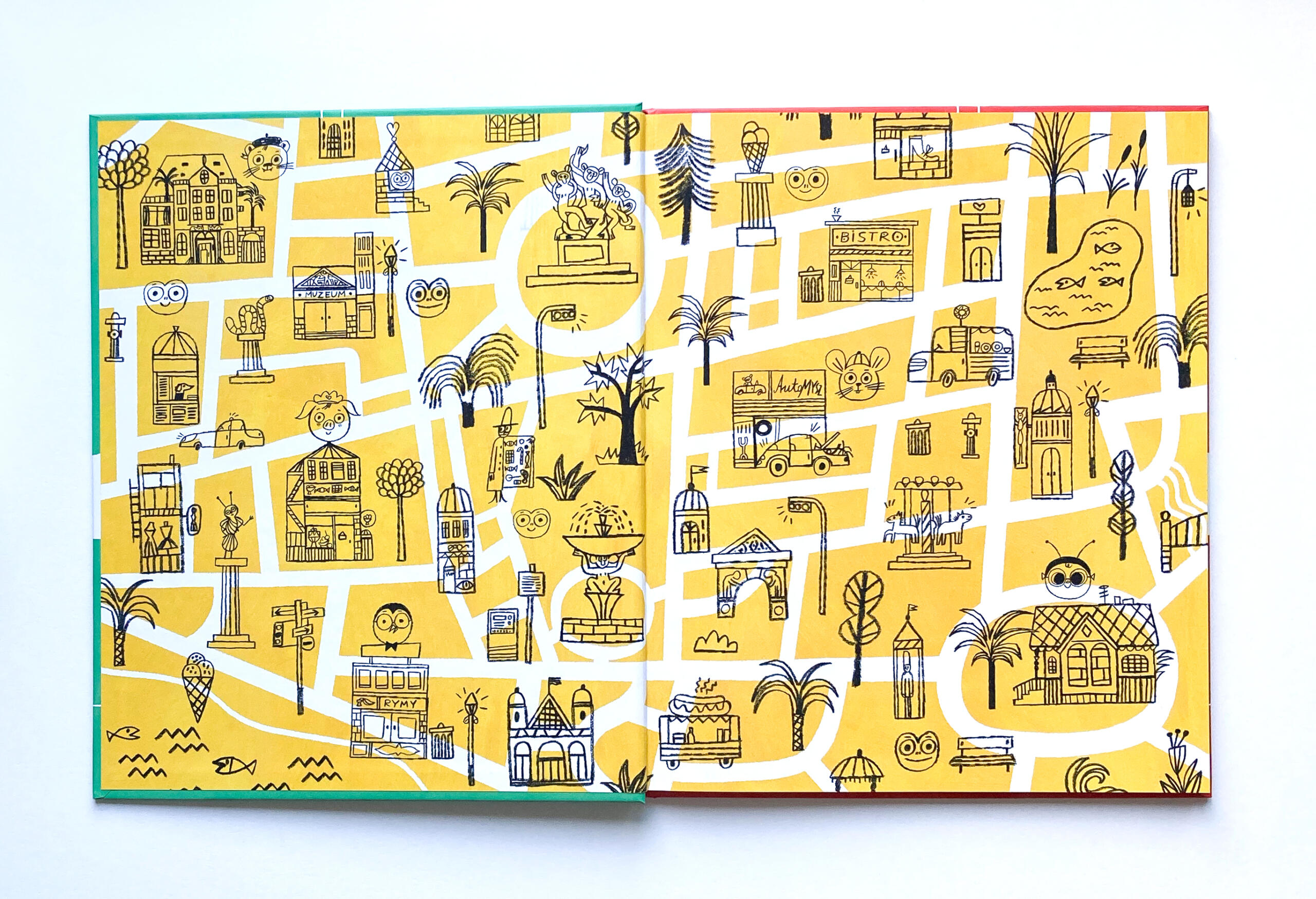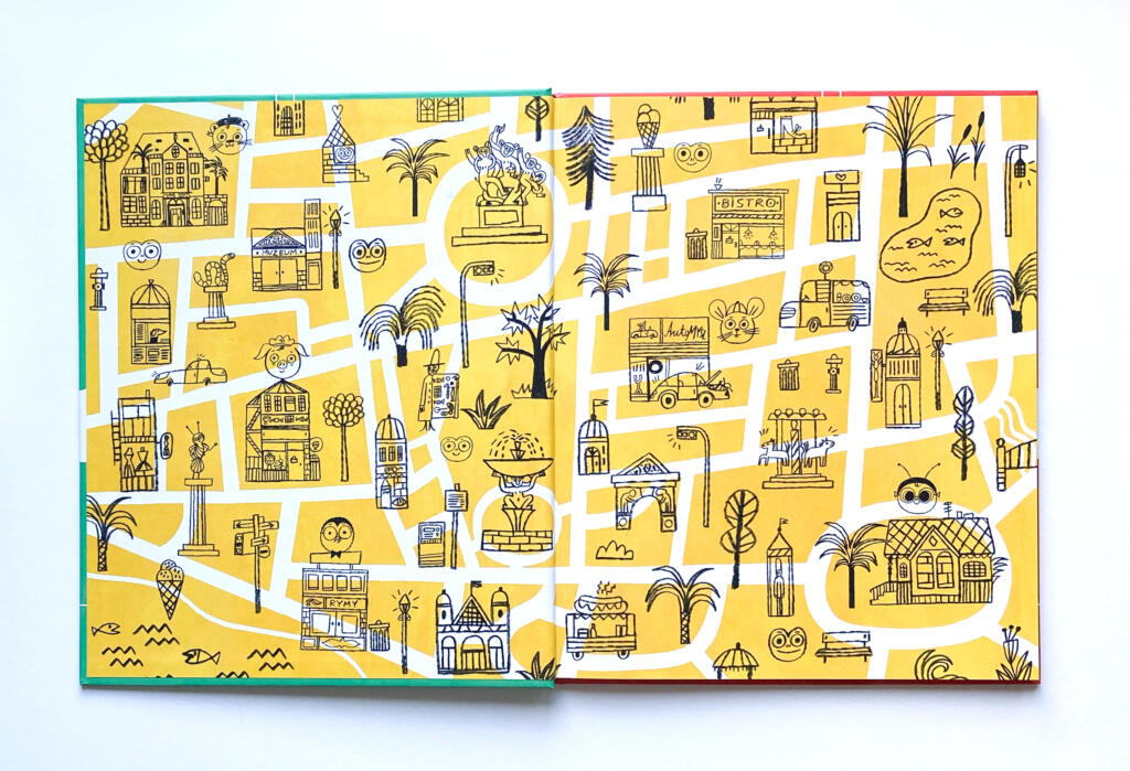 There is so much to see in this zany city: there’s a bug parade, a shop selling rhymes, a busy bakery selling cream puffs and ice cream, a Robo-Dog dancing in the park, and so much more!